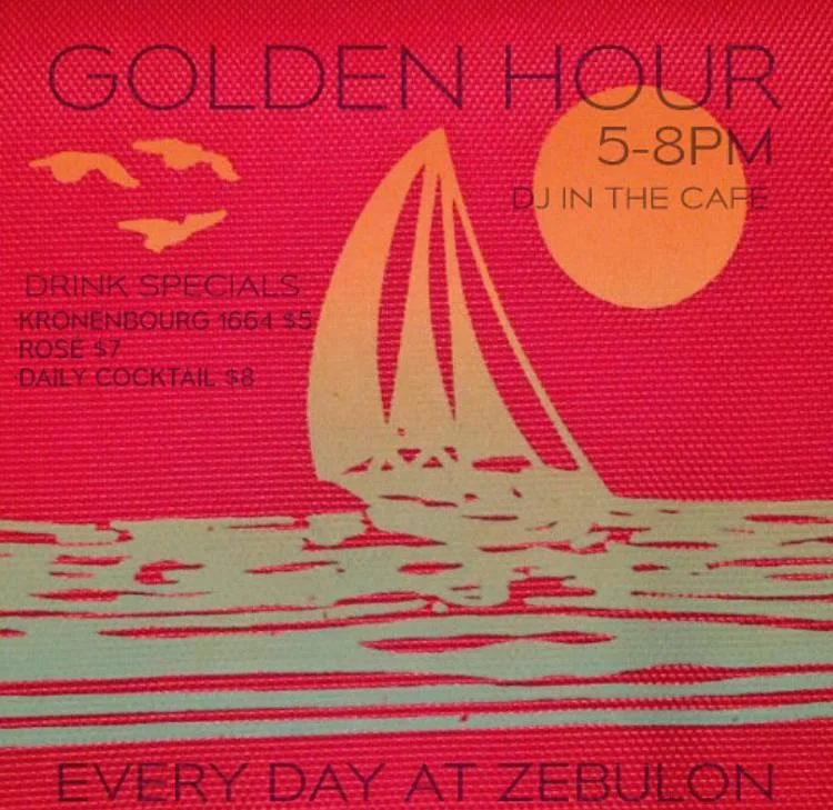 Join us for Golden Hour at Zebulon from 5-8pm for drink specials and a curated DJ set from yours truly :)